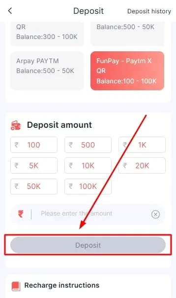 - Choose the deposit option, then Enter the amount you wish to add to your account.